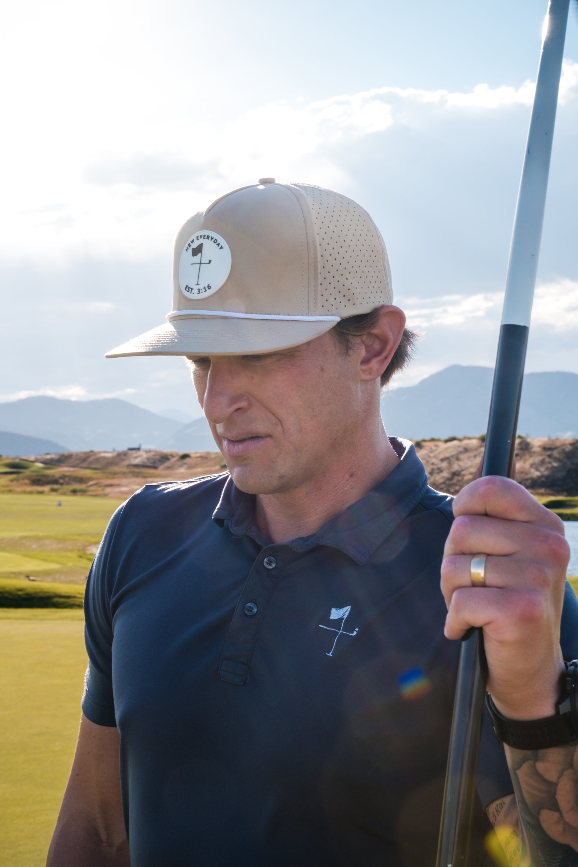 New EveryDay Flagship Hat. The patch says it all. This 5 pannel snapback hat is perfect for the office, the course, even Sunday chores.